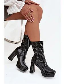 Kesi Fekete lakkbőr bokacsizma platform S pánttal Dorelia