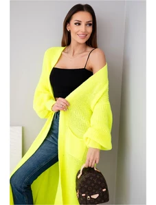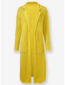 BASIC Mustáros hosszú kardigán zsebekkel BA-SW-0291-1.56P-dark yellow