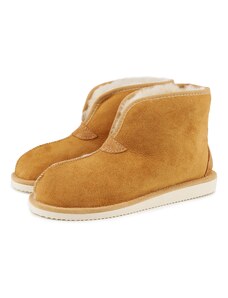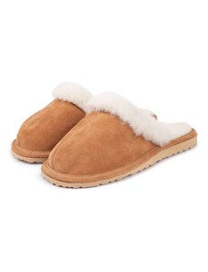 Vlnka Női telitalpú bőr papucs birka gyapjúval, világosbarna felnőtt cipő