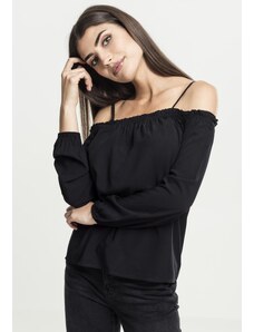 Női póló hosszú // Urban classics Ladies Cold Shoulder Smoke Longsleeve black