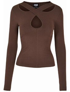 Női póló hosszú ujjú // Urban Classics / Ladies Crossed Cut Out Longsleeve brown