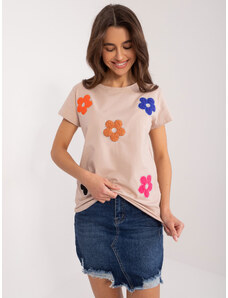 BASIC FEEL GOOD Bézs póló virágos rátéttel RV-BZ-9622.16X-beige