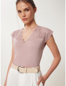 BASIC Rózsaszín crop pulóver hímzéssel az ujján LYRA MY2215