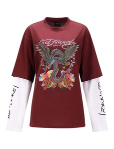 TOM TAILOR DENIM Póló világos-rózsaszín / bordó / fehér