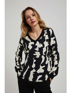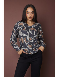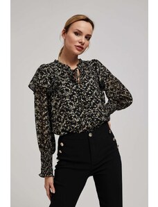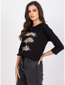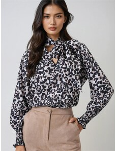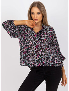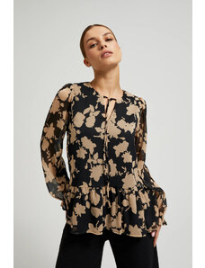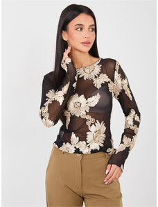 ITALY MODA Aurora fekete-bézs blúz virágokkal és lánccal hátul -DHJ-BZ-6550-1.29P-black.beige