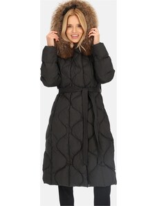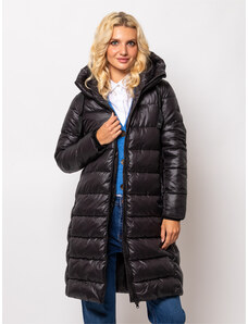 Perso Fekete női hosszú, steppelt pehelykabát kapucnival S BLH 250869 FX - fekete