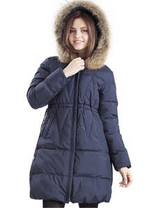 Perso Sötétkék női steppelt kabát S szőrme BLH 201039 F - sötétkék