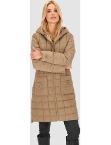 Perso Világosbarna steppelt női kabát kapucnival BLE 241045 F - Teveszín