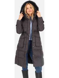 Perso Sötétszürke női női pehelykabát S szőrmével a kapucniján BLH 220027 FXR - sötétszürke
