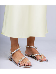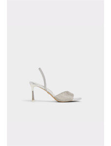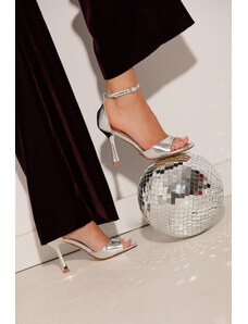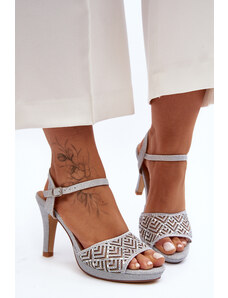 Szürke, nyári, tűsarkú női szandálok