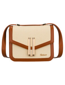 Peterson bézs-barna női crossbody táska bőrből és vászonból PTN CAN-02