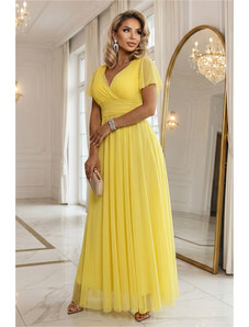 Numoco basic Hosszú ruha nyakkivágással és megkötővel - citromsárga limoncello