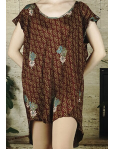 BagNet Női tunika, virágmintás, indiai selyem, barna