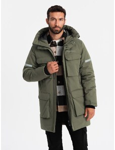 Ombre Men's insulated long jacket with reflective elements - olive