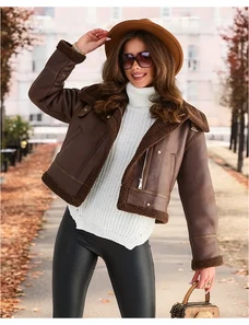 Resti Women's eco-leather jacket with fur in black color