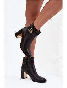 Kesi Fekete női Női bokacsizma magassarkúval S pánttal és arany díszítéssel Galinne