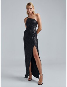 Elizabeth Collection Fekete csillogó ruha hasítékkal