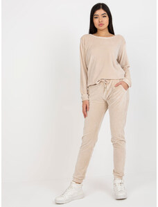 RUE PARIS Világos bézs velúr tréningruha szett -RV-KMPL-6083.05-light beige