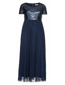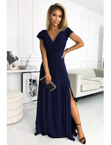 NUMOCO CRYSTAL Sötétkék csillogó hosszú ruha nyakkivágással 411-3
