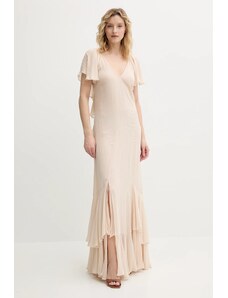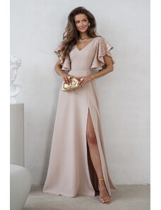 NUMOCO Világos bézs hosszú ruha nyakkivágás szabással JENNIFER 581-6