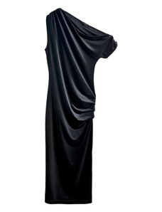 NUMOCO Fekete fényes hosszú ruha nyakkivágással JENNIFER 581-1