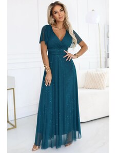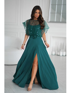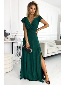 NUMOCO Sötétzöld csillogó hosszú ruha nyakkivágással CRYSTAL 411-1