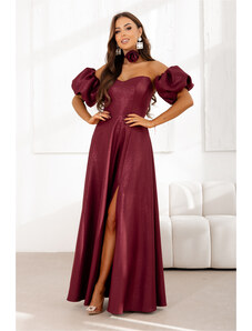 NUMOCO Női bordó hosszú ruha hasítékkal és nyakkivágással 581-2