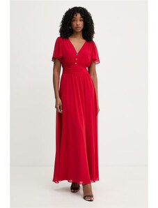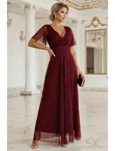 NUMOCO Piros hosszú ruha nyakkivágással és csillogással CRYSTAL 411-2