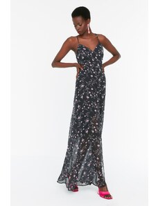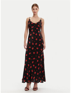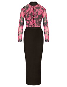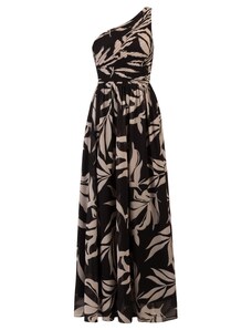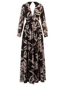 NUMOCO Hosszú fekete levél mintás ruha KATE 194-4