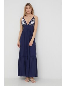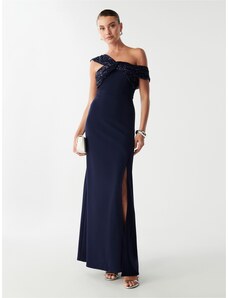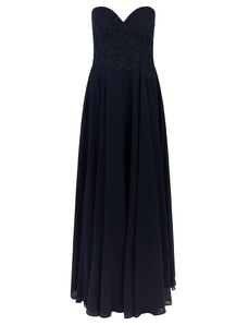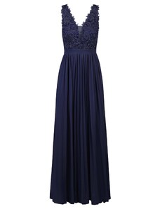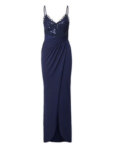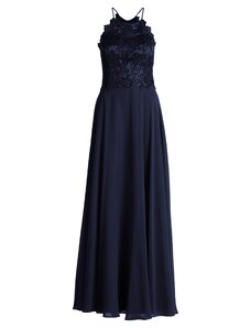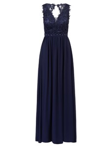 NUMOCO Elegáns sötétkék csipkés hosszú ruha S nyakkivágásszabásem ELISA 309-6