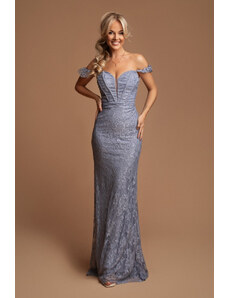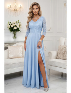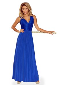 NUMOCO Elegáns kék csipke hosszú ruha nyakkivágással ELISA 309-12