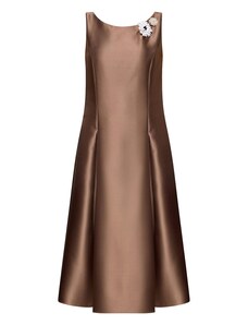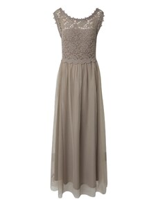 NUMOCO Mokka színű női alkalmi ruha átlátszó betéttel és fekete csipkével 617-1