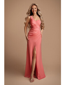 BASIC Világos rózsaszín fényes estélyi ruha LK-SK-509486.05X-light pink