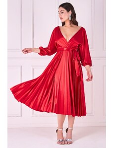 RUE PARIS Piros elegáns ruha kötéssel -RV-SK-8018.91-piros