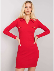 RUE PARIS Piros szűk ruha gombokkal RV-SK-8014.08-piros