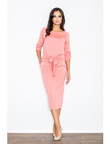 NUMOCO Világos rózsaszín női rakott ruha hosszú ujjal és nyakkivágással CAMILLA 313-16