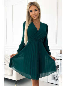 NUMOCO Sötétzöld sifon rakott ruha ISABELLE 313-14 green