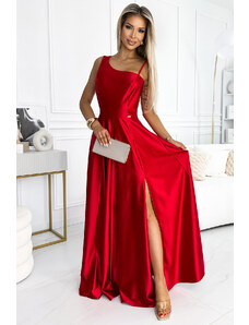 NUMOCO Piros fényes maxi ruha hasítékkal 524-1