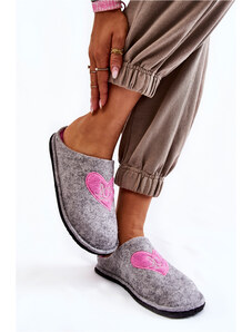 Szürke, szőrmével és szívecskékkel díszített Boto papucs