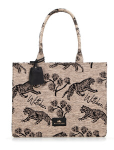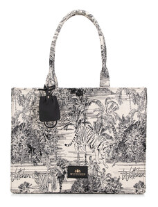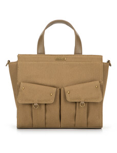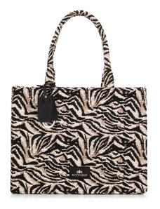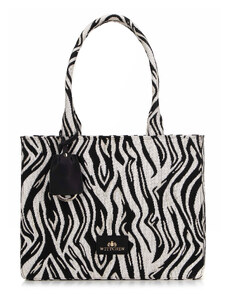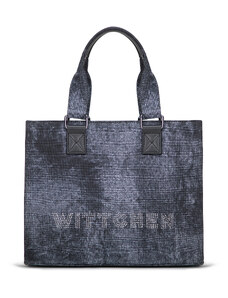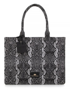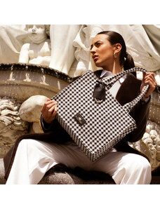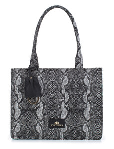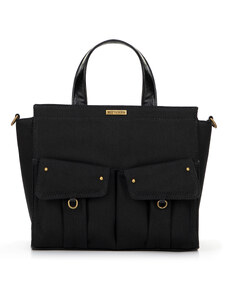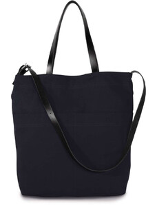KI0287 zsebes bevásárlótáska bőr füllel és vállpánttal Kimood, Black-U
