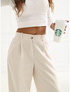 BASIC Elegáns krémszínű melegítőnadrág magas derékkal EM-SP-794.15X-ecru