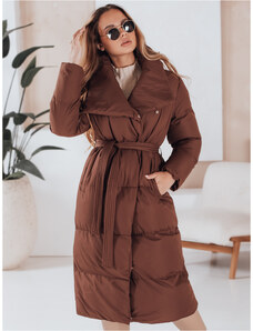 BASIC Barna hosszú női steppelt kabát női övvel S FAVI TY4962