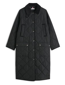 BASIC PREMIUM Fekete fényes hosszú steppelt kabát TY3024
