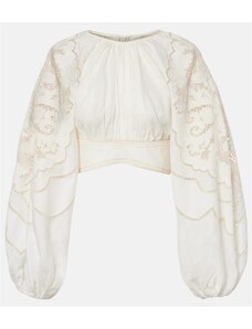 Zimmermann Daylight embroidered linen crop top