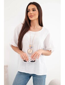 Kesi Włoski női túlméretezett pamut blúz fehér