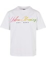 The basic T-shirt with the logo will delight you with a classic, comfortable cut and a modern Urban Classics print. The cursive lettering of the logo stretches across the chest in a spectacular color gradient. The style is finished with a round neckline and slightly dropped shoulders. This summer t-shirt offers a relaxed oversize fit and cosy one-jersey cotton for a comfortable companion.