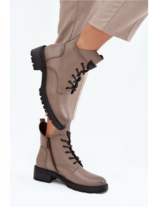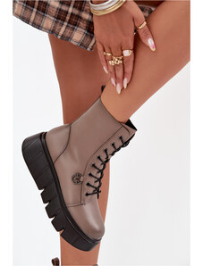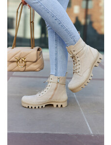 Boto Bőr női fűzős bokacsizma bézs Nicole 2836