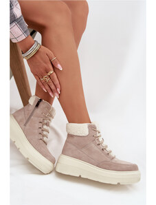 Boto Női velúr bokacsizma, fűzős bézs Nicole 2836