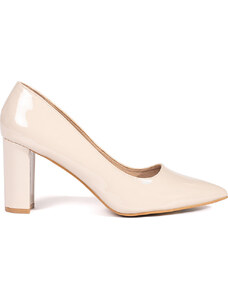 BASIC Elegáns, lakkozott krémszínű blokksarkú cipő, sarok 8 cm AI08BE