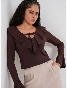 SUBLEVEL Barna női blúz kivágással D73761M11081A-brown